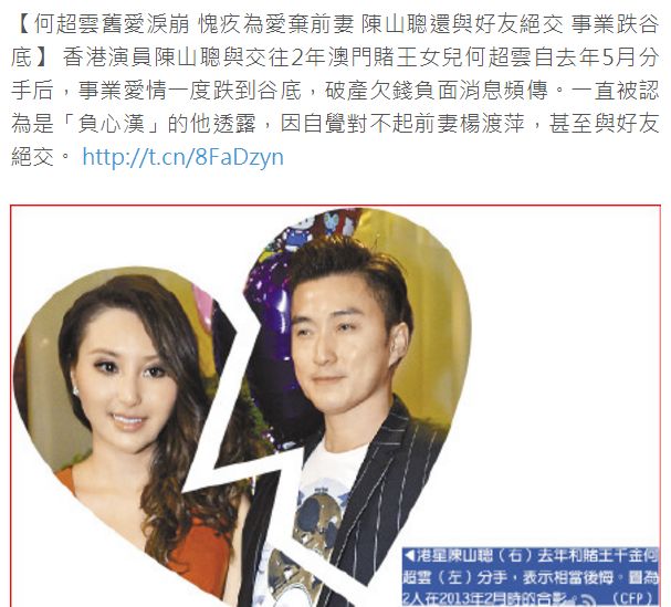 ä½ ä¸ç¥é"çäº ä»ä¸ºèµç女å¿ç ç"©å'妻 æ´ä¸å¥½ååç® è±ªé¨æ¢¦æåå"çå'å妻认é" from himg2.huanqiucdn.cn 但為追千金女,陳山聰竟不惜拋棄拍拖 10年、原定明年結婚的 47歲未婚妻 ponny yeung(楊渡萍),本刊更發現 ponny近日被遣返娘家葵盛公屋,最慘係原來 ponny有一中風老母要照顧,而楊母更發晦氣話從來未見過陳山聰,又懶理陳山聰正力溝賭王女。 楊渡萍 人財兩失 驚聞 超雲結婚 陳山聰 前妻 老咗10年 face 周刊 283期 ' 12落寞怨婦 ponny 要照顧中過風的年老母親,冇老公一齊分擔,殘爆 ponny等睇醫生時愁眉苦臉,唧都唔笑。
